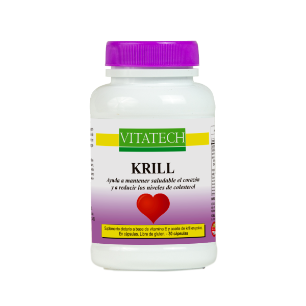 Krill Vitatech está elaborado con el más puro aceite de krill en polvo existente, y es un complemento de la alimentación rico en Omega 3 (EPA y DHA) y Fosfolípidos.